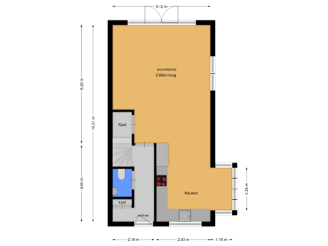 Entree, hal, meterkast, modern zwevend toilet met fonteintje, trapopgang naar de 1e verdieping, ruime uitgebouwde woonkamer met bergkast en openslaande deuren naar de achtertuin.
