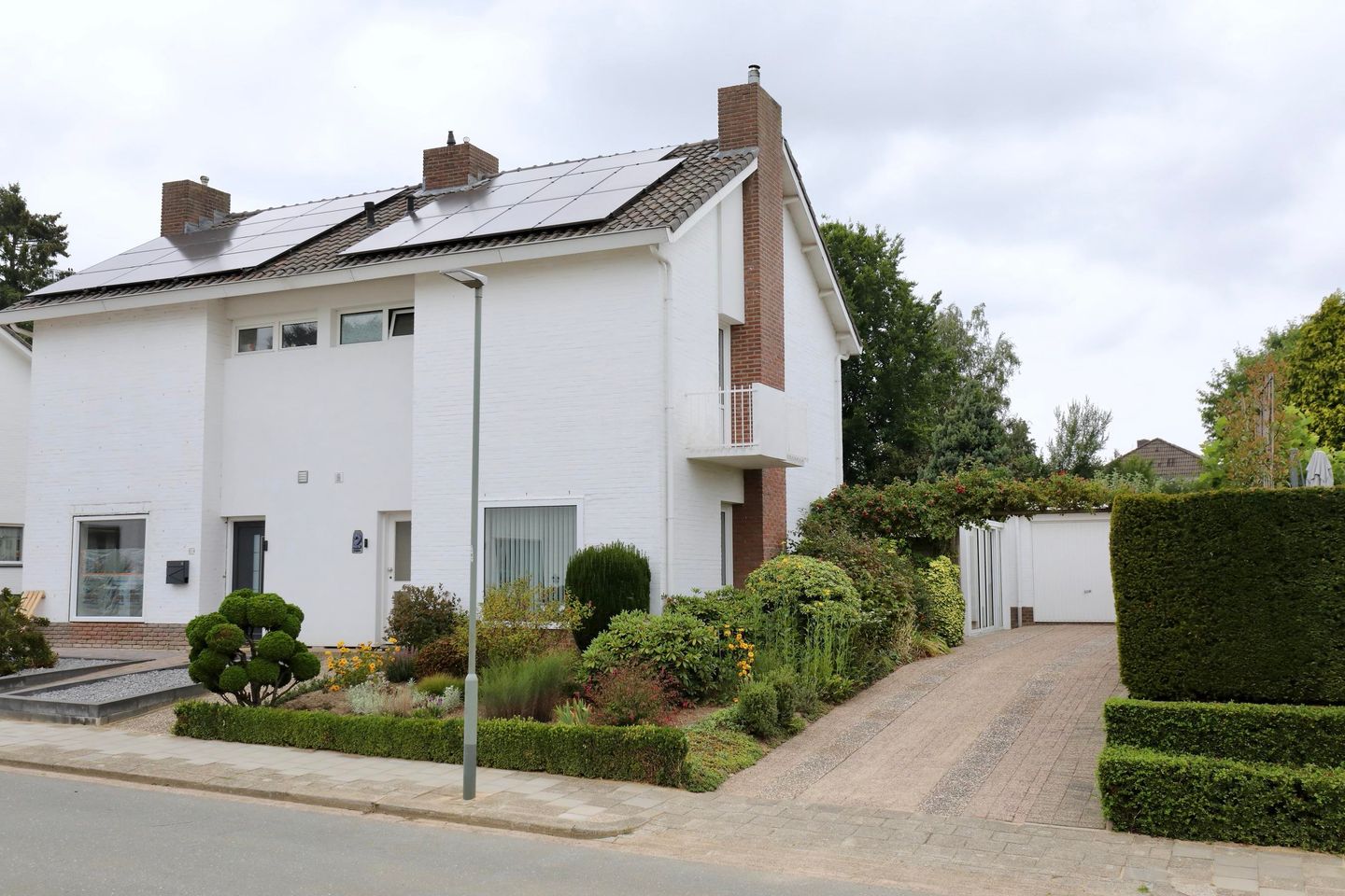 De vrijstaande garage (21 m²) is uitgevoerd in steen en voorzien van een elektrische kantelpoort met afstandsbediening. Op de oprit is ruimte voor twee à drie auto’s – parkeren is dus geen enkel probleem.