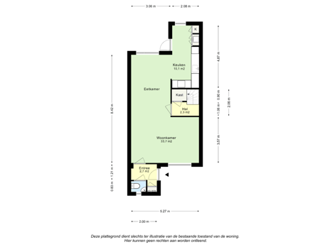 - 39 m² (7,00 meter diep en 5,50 meter breed)