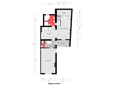 Parterre: hal/entree met trapopgang, toiletruimte met wastafel, meterkast (10 automaten), woonkamer (ca. 6.32 x 3.66) met parketvloer, schouw en veel lichtinval, eetkeuken (ca. 3.11 x 3.66) met tegelvloer, achterdeur naar serre en aanbouwcombinatie in U-opstelling (voorzien van gaskookplaat, afzuigkap, oven en vaatwasser), ruime badkamer (ca. 2.68 x 2.74) met inloopdouche, ligbad en 2e toilet, verwarmde serre (ca. 5.85 x 3.47) met aansluitpunt wasmachine en droger en deur naar de tuin, berging alwaar standplaats cv-ketel en boiler (huurtoestel), achtertuin en buitenberging (ca. 3.56 x 3.99);