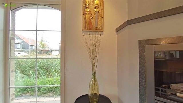 De royale, lichte woonkamer is voorzien van grote raampartijen die uitkijken op de fraai aangelegde tuin, waardoor er veel natuurlijk licht binnenkomt. De sfeervolle haard zorgt voor extra gezelligheid en warmte. Via de schuifpui loop je zo de tuin in, ideaal voor een zomerse avond of om te ontspannen in de frisse buitenlucht.