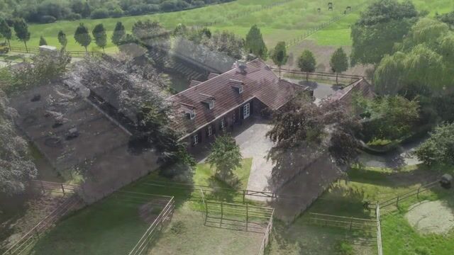 De paardenstal is opgetrokken uit stalen spanten, houten gordingen en is voorzien van een klinkervloer, lichtplaten en een asbestvrij dak. Ingedeeld met een 10 boxen, zadelkamer, 5 loopstallen, dekbox en 2 wasplaatsen.