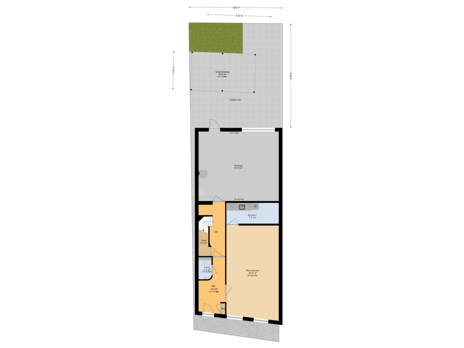 - 66 m² (11,00 meter diep en 6,00 meter breed)