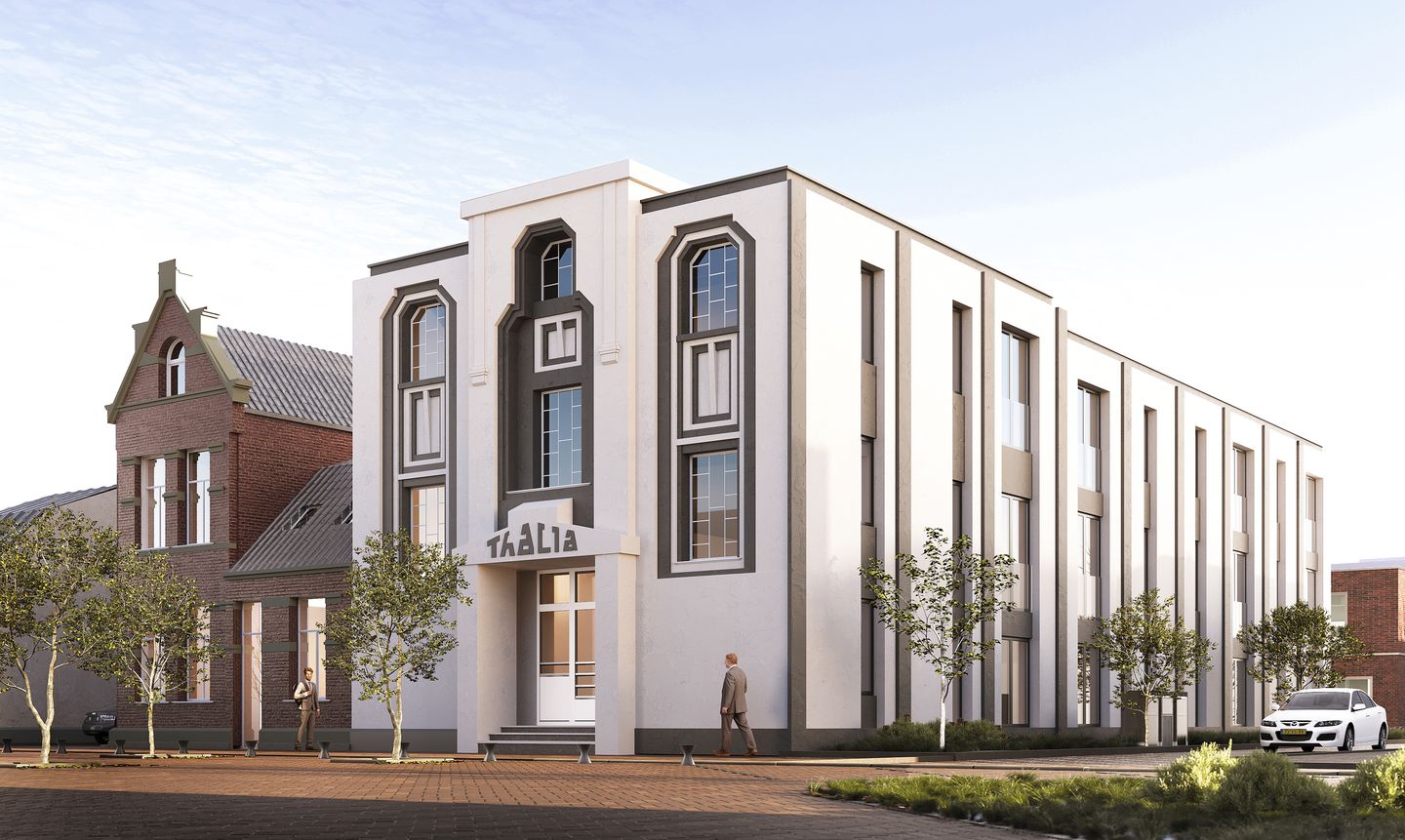 Het Thaliatheater en de naastgelegen pastorie in IJmuiden krijgen een nieuw en duurzaam leven. In de prachtige gebouwen uit 1890 worden 21 fantastische appartementen met minimaal energielabel A++ gebouwd. Met een oppervlakte tussen de 43 en 113 m2 is er altijd een appartement dat bij u past. Een deel van de appartementen op de begane grond biedt de mogelijkheid om levensloopbestendig te wonen en de appartementen op de bovengelegen verdiepingen zijn te bereiken via het prachtige trappenhuis. Misschien wordt een van de kleedkamers uw slaapkamer of woont u straks op de plek van het podium. Het gezamenlijke dakterras wordt een geweldige plek om te loungen, borrelen en waar je al snel kennismaakt met je buren. Dit is een kans die u niet mag missen, op een plek met een rijke historie en met het strand op iets meer dan 10 minuten fietsen.