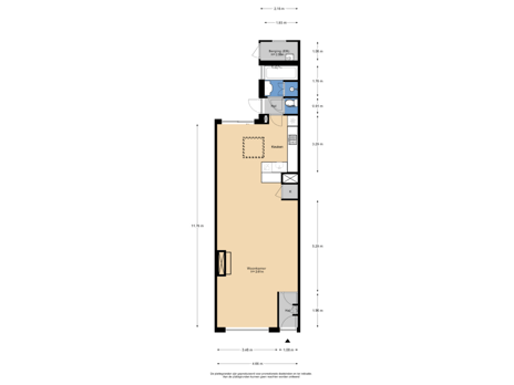 - 34 m² (7,32 meter diep en 4,66 meter breed)