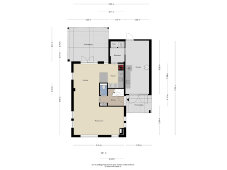 Vanuit hier heb je toegang tot de ruime inpandige garage, die multifunctioneel te gebruiken is; momenteel staat hier ook een keukenblok opgesteld.