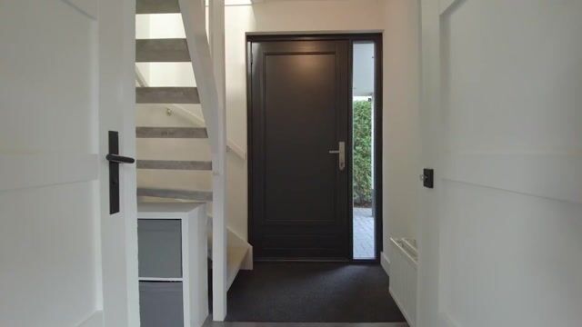 Je komt binnen in de ruime hal met toegang tot het toilet, de trapopgang en de woonkamer.
