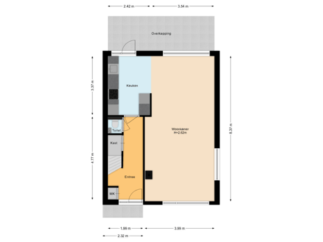- 96 m² (10,25 meter diep en 9,38 meter breed)