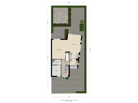 - 99 m² (9,45 meter diep en 10,48 meter breed)