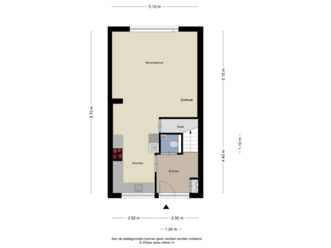 - 50 m² (10,00 meter diep en 5,00 meter breed)