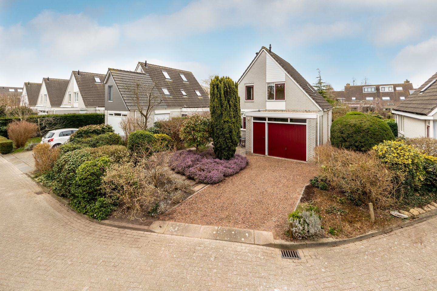 Nadat je de auto hebt geparkeerd op eigen erf lopen we door de ruime voortuin naar de voordeur. We komen binnen via de hal met een moderne toiletruimte en meterkast.