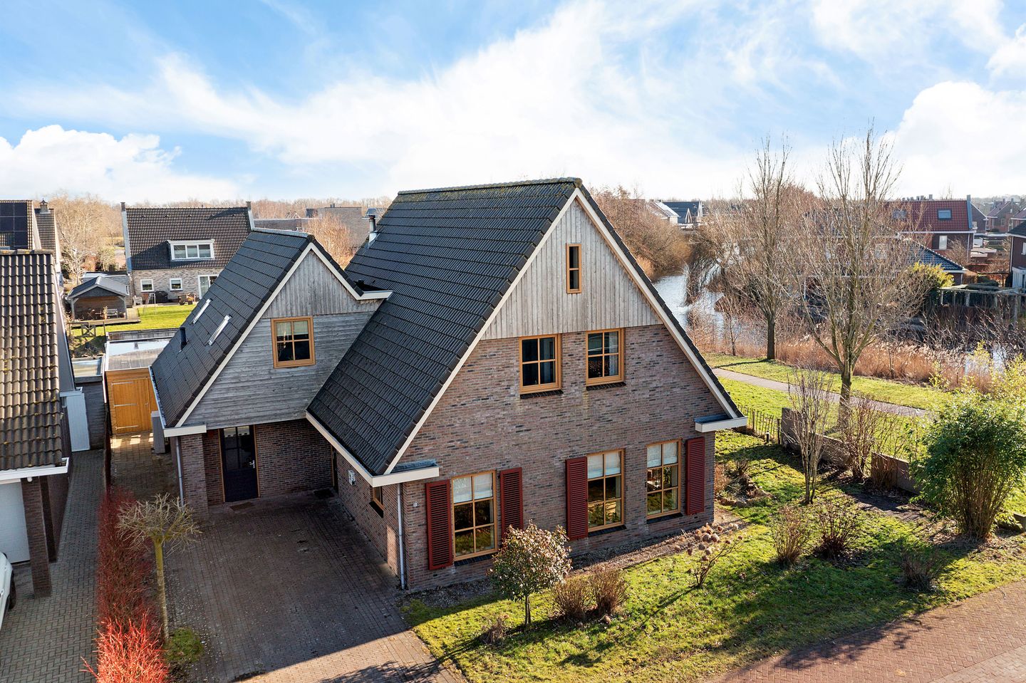 Zeer rustig gelegen royaal vrijstaand woonhuis (243 m²!) aan het einde van een doodlopende straat, omringd door water, riet en watervogels. Zowel van binnen als van buiten straalt het in 2009 gebouwde huis warmte en karakter uit, met red cedar topgevels en sfeervolle luiken voor de ramen.