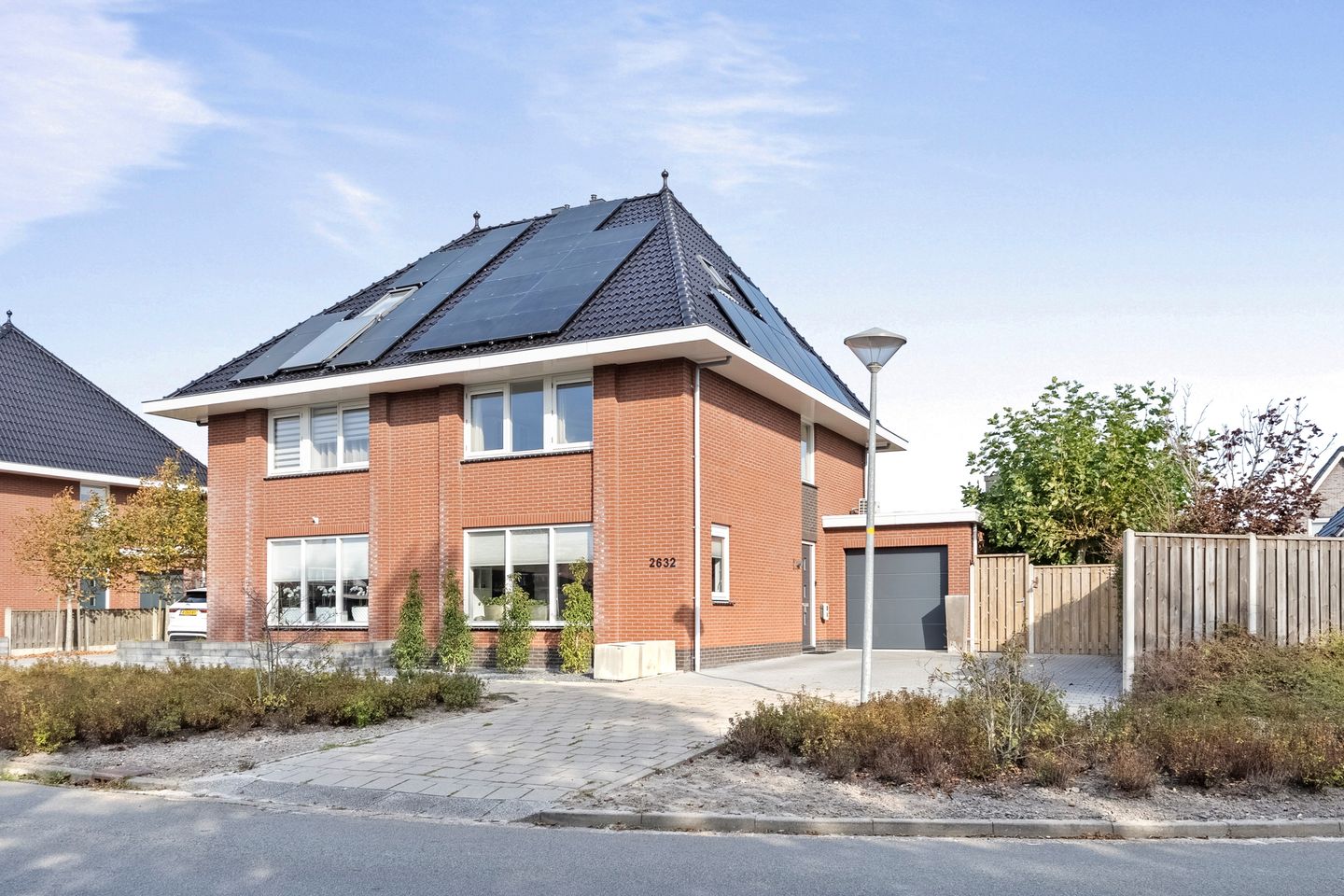 • De oprit voor de garage biedt parkeergelegenheid voor ten minste twee auto’s.