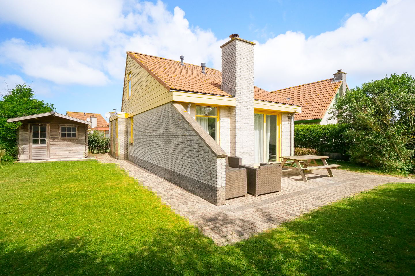 Deze semi-bungalow is heerlijk vrij gelegen aan de rand van het park met de gehele dag de zon.