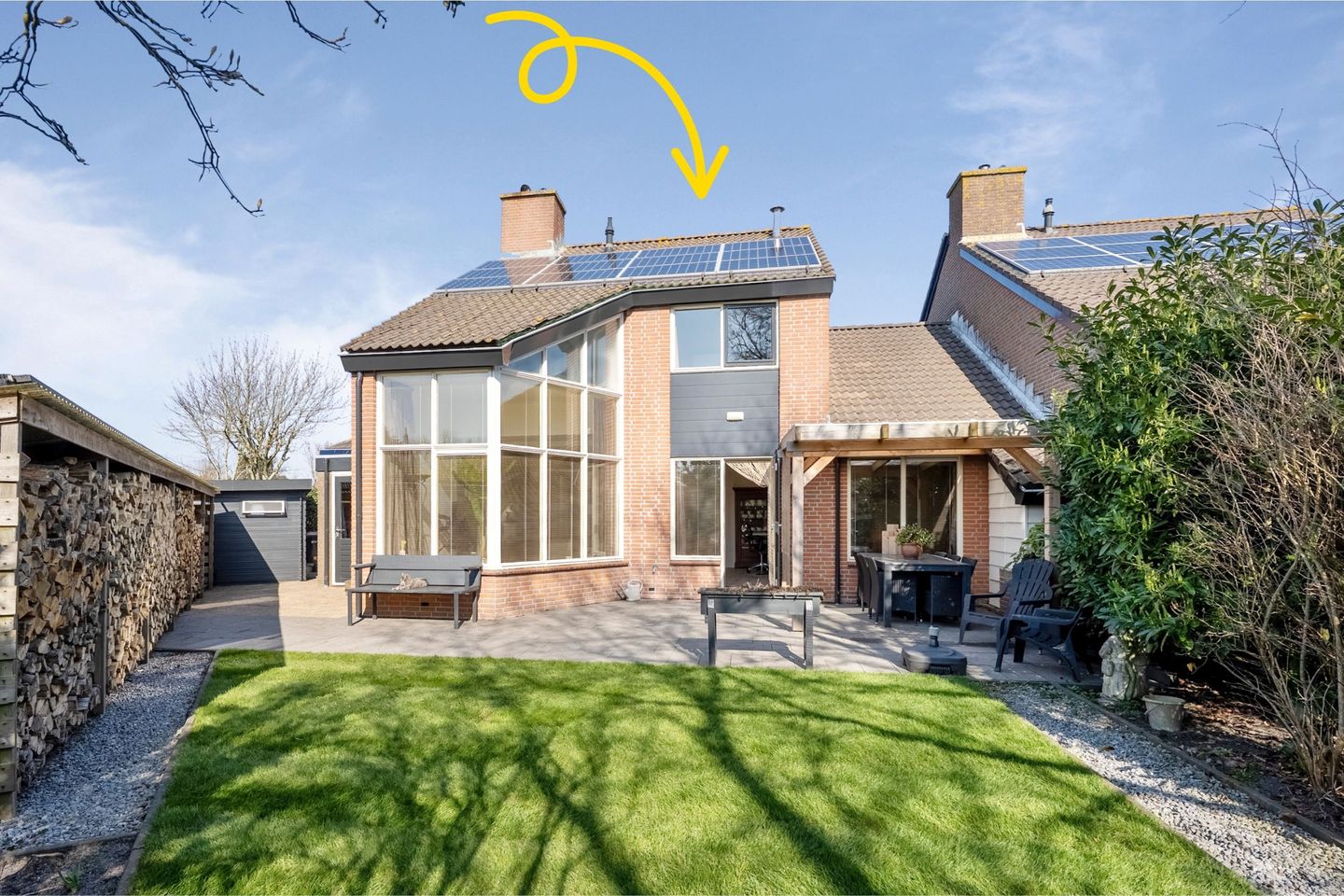 • De in totaal negentien zonnepanelen zijn in eigendom, waarbij de twaalf panelen op de woning dateren van 2014 en de zeven panelen op de houtopslag in 2025 zijn geplaatst.