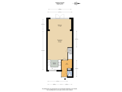 - 75 m² (13,83 meter diep en 5,42 meter breed)