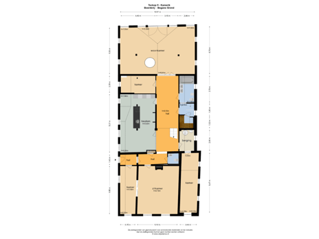 Entree via de statige hal met toegang tot de centrale gang. Aan de voorzijde een sfeervolle voorkamer met originele schouw, witjes en antiek tegeltableau.
