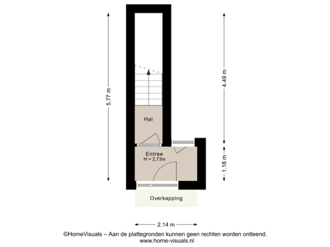 Je komt binnen via de gezamenlijke entree. Vanuit hier heb je via je eigen voordeur toegang tot de hal en de trapopgang naar het appartement.