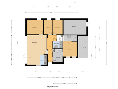 De woning heeft een praktische indeling en beschikt over in totaal vier slaapkamers. Via de voordeur kom je in de entree/hal met toegang tot diverse vertrekken. Zo is er aan de rechterzijde de berging, met aansluiting voor de wasmachine, cv installatie en daar is de meterkast. Vanuit de berging bereik je een slaapkamer en een badkamer. De badkamer is voorzien van een douche, wastafel en toilet. Aan de linkerzijde bevindt zich de woonkamer met aangrenzend de open keuken. De keuken is voorzien van inbouwapparatuur. Vanuit de woonkamer is een doorgang naar een ruime slaapkamer. Aan de voorzijde van de woning zijn vanuit de hal nog twee slaapkamers bereikbaar en een aparte toilet met wastafel. De tweede badkamer is voorzien van een ligbad en een wastafel.