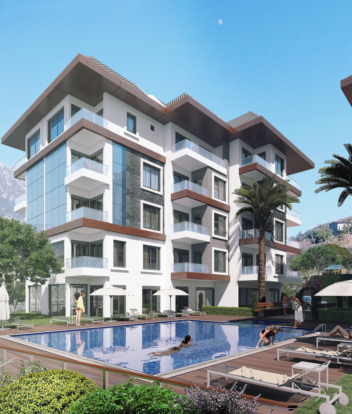 Het project GOLDCITY Signature 3+1 bestaat uit 2 blokken van 54 moderne appartementen. Gelegen op een ruim perceel en op steenworp afstand van GOLDCITY Hotel. De appartementen hebben een adembenemend uitzicht op de zee, bergen en het prachtige Alanya.