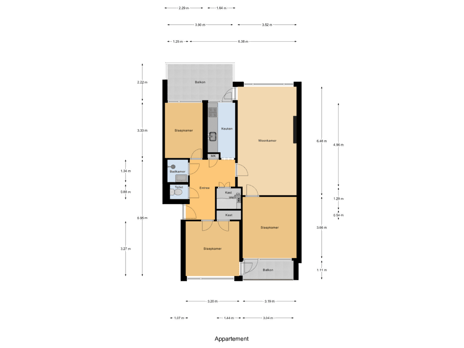 Het appartement beschikt over drie goed bemeten slaapkamers.