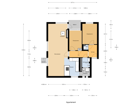 Het appartement beschikt over twee slaapkamers. De hoofdslaapkamer biedt ruimte aan een groot tweepersoonsbed en heeft een prettige lichtinval. De tweede kamer is perfect te gebruiken als logeerkamer, werkplek of inloopkast.
