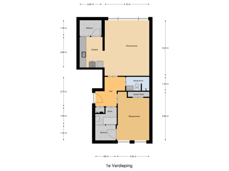 Entree in de hal met meterkast en een praktische separate inpandige berging voor wasmachine, droger en cv-ketel. Vanuit de hal bereik jij de royale slaapkamer aan de voorzijde, die tevens toegang biedt tot het zonnige balkon op het zuiden. Aansluitend vind jij de modern uitgevoerde badkamer met toilet, wastafelmeubel en douche.