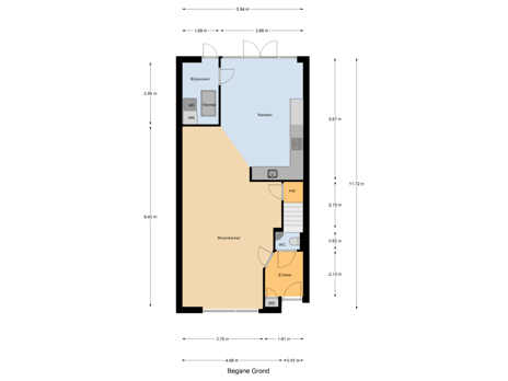 - 48 m² (8,80 meter diep en 6,24 meter breed)