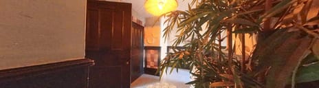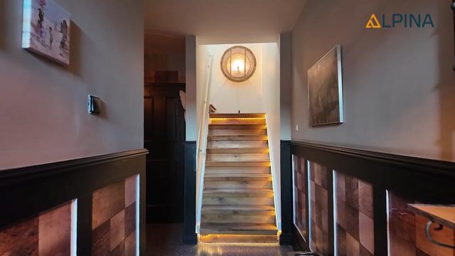 Via de karakteristieke gevel met lichtbruine voordeur betreedt u de hal, waar direct de sfeer van de woning voelbaar wordt. De entree is stijlvol afgewerkt met donker houten lambrisering, een geometrisch tegelpatroon op de wand en een terrazzo vloer die perfect past bij het karakter van het huis. De warme tinten, gecombineerd met de speelse verlichting, creëren een uitnodigende ambiance.