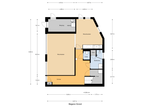 - 18 m² (6,49 meter diep en 2,84 meter breed)