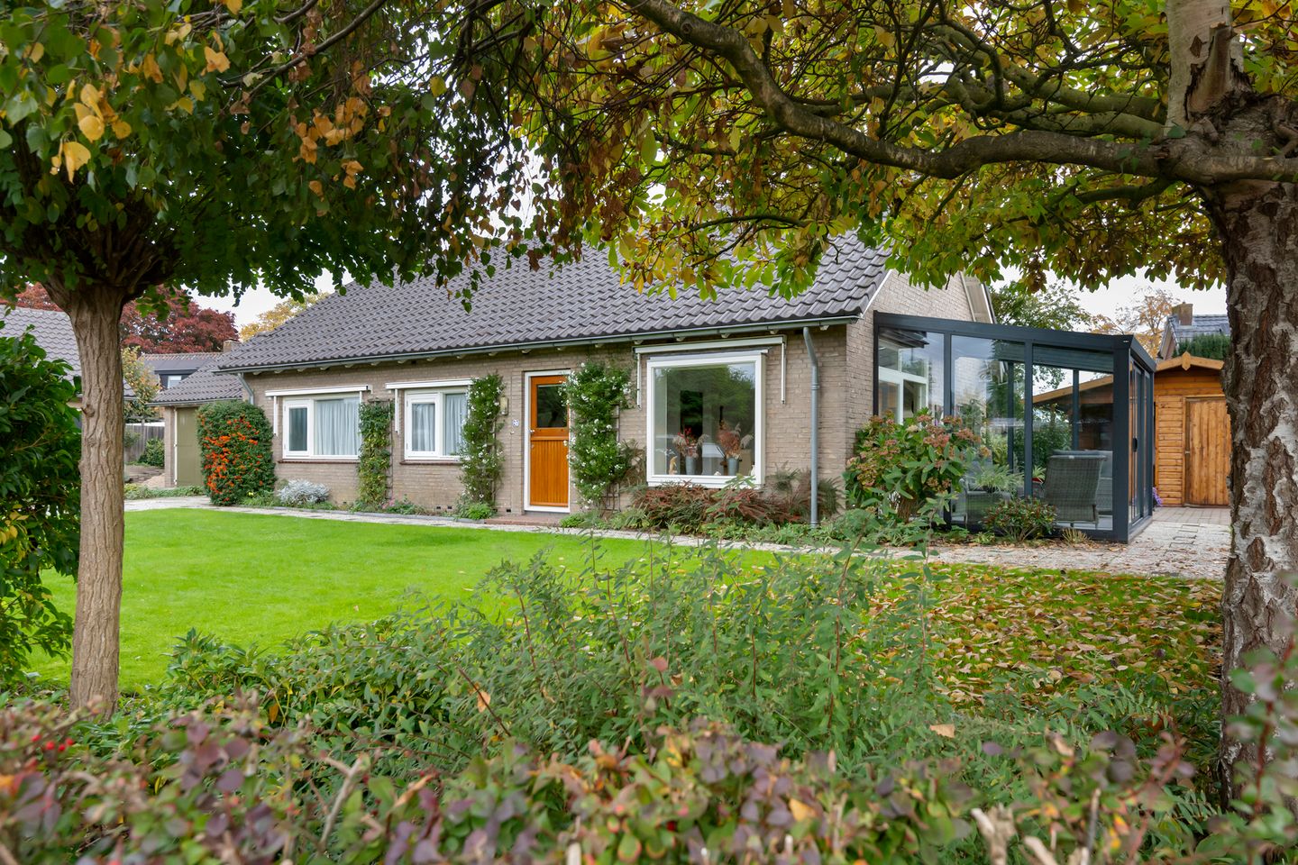 Deze woning straalt rust en vriendelijkheid uit. Met een royale woonoppervlakte van 138 m² is het huis verrassend ruim en praktisch ingedeeld. Alle essentiële voorzieningen bevinden zich op de begane grond, waaronder een sfeervolle woonkamer met balkenplafond, een royale woonkeuken, een complete badkamer en twee multifunctionele slaapkamers. De grote serre op het zuiden, met schuifpui naar de tuin, verlengt het buitenseizoen aanzienlijk – van de vroege lente tot diep in de herfst is dit een heerlijke plek om te ontspannen.