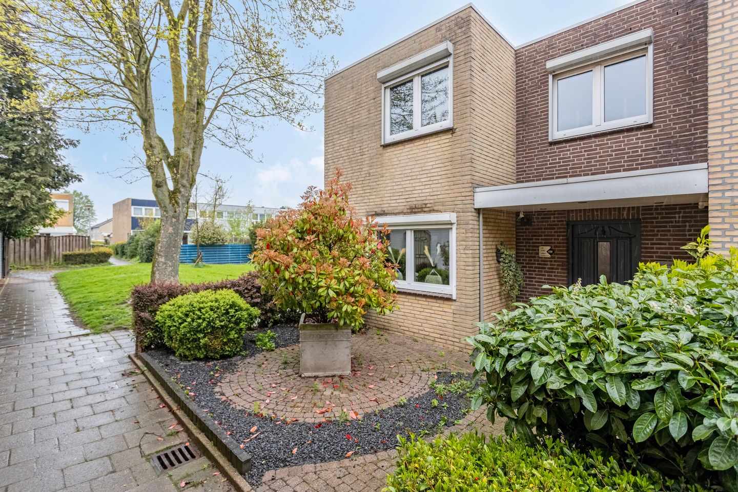 Nette voortuin met overdekte entree.