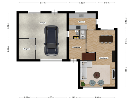 De gehele begane grond is afgewerkt met een moderne, doorlopende pvc-visgraatvloer, strak gestucte wanden, verlaagde plafonds met ingebouwde verlichting en is voorzien van vloerverwarming.