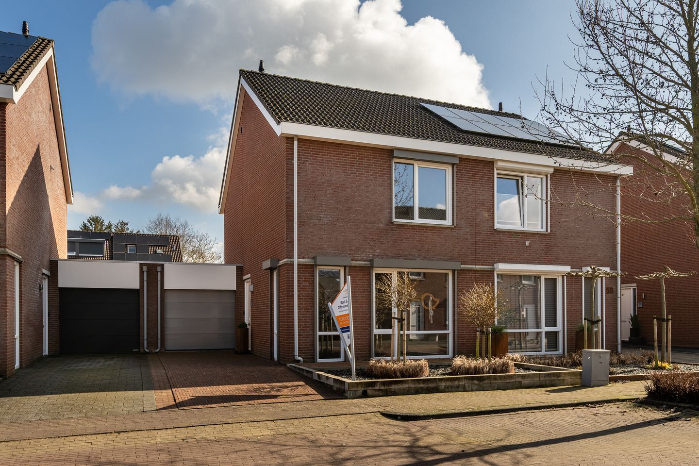 In 2021 zijn de voor- en achtertuin en de oprit opnieuw aangelegd, passend bij de sfeervolle inrichting van het woonhuis.