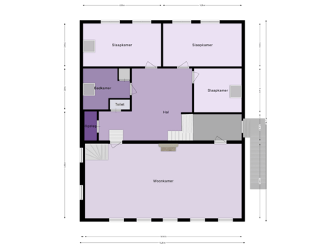 Via de buitentrap aan de zijkant kom je binnen op de ruime hal/overloop, die toegang geeft tot alle vertrekken.
