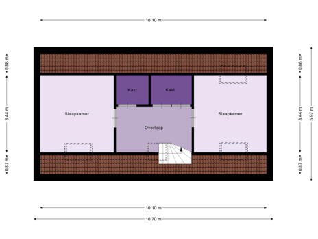 De tweede verdieping beschikt over nog eens twee ruime slaapkamers, beide met dakramen. De overloop biedt toegang tot een praktische opbergkast. Daarmee zijn er in totaal maar liefst vijf volwaardige slaapkamers aanwezig.