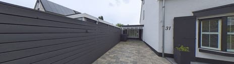 De achtertuin is volledig gericht op comfortabel buitenleven. Via de openslaande deuren komt u onder de royale overkapping met glazen schuifwanden. Hier heeft u ruimte om het hele jaar door buiten te zitten, ongeacht het weer. Achterin de tuin staat een moderne, vrijstaande tuinkamer met glazen pui, momenteel ingericht als fitnessruimte. De tuin is onderhoudsvriendelijk bestraat en omsloten door strakke erfafscheidingen voor optimale privacy.