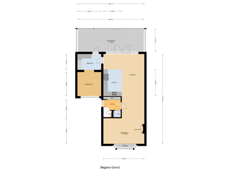 - 96 m² (9,30 meter diep en 9,52 meter breed)