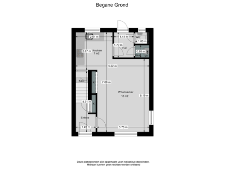 De hal met tegelvloer biedt toegang tot de woonkamer. In de hal bevindt zich de meterkast en trap naar de 1e verdieping.