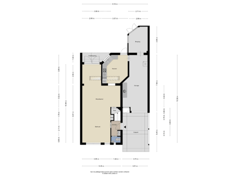 • N.B. De maatvoering, gebruiksoppervlakten en inhoud van deze woning zijn bepaald door een professioneel bedrijf en zijn gebaseerd op de Meetinstructie en de NEN2580. Ondanks alle zorgvuldigheid kunnen eventuele fouten niet uitgesloten worden, door meetfouten, interpretatieverschillen of beperkingen bij het inmeten. Daarom adviseren wij u dringend - indien de maatvoering, oppervlakten en/of inhoud voor u belangrijk zijn en/of bepalend voor de prijs – dit aan ons kenbaar te maken en deze meetgegevens te controleren. Wij willen u daarbij uiteraard graag helpen.