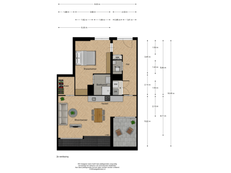 In de L-vormige woonkamer is een open keuken voorzien die casco wordt opgeleverd; daarnaast is er een extra deur naar een onbenoemde ruimte (hobby/berging). Kopers kunnen deze geheel inrichten naar hun eigen smaak en behoefte. Anno dit tijdperk koken we uiteraard op elektra. Ook de verwarming wordt hierop gebaseerd. Voelbaar, niet zichtbaar, want de vloeren vormen de warmtebron. Dat geldt ook voor de badkamer met inloopdouche en wastafel en bij dit woningtype separaat ingedeelde toiletruimte met fontein. Beide sanitaire ruimtes worden betegeld en voorzien van hoogwaardig sanitair en kranenwerk.