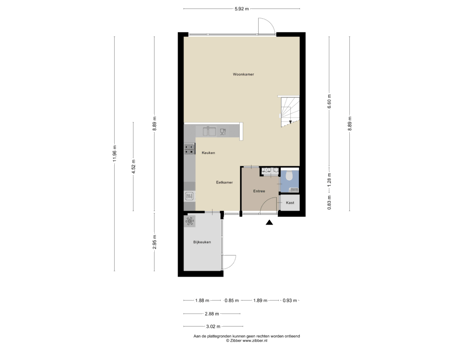 - 68 m² (11,00 meter diep en 6,20 meter breed)