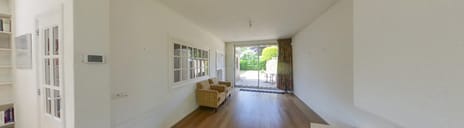 - Grote L-vormige woonkamer met openhaard en schuifpui aan de achterzijde;