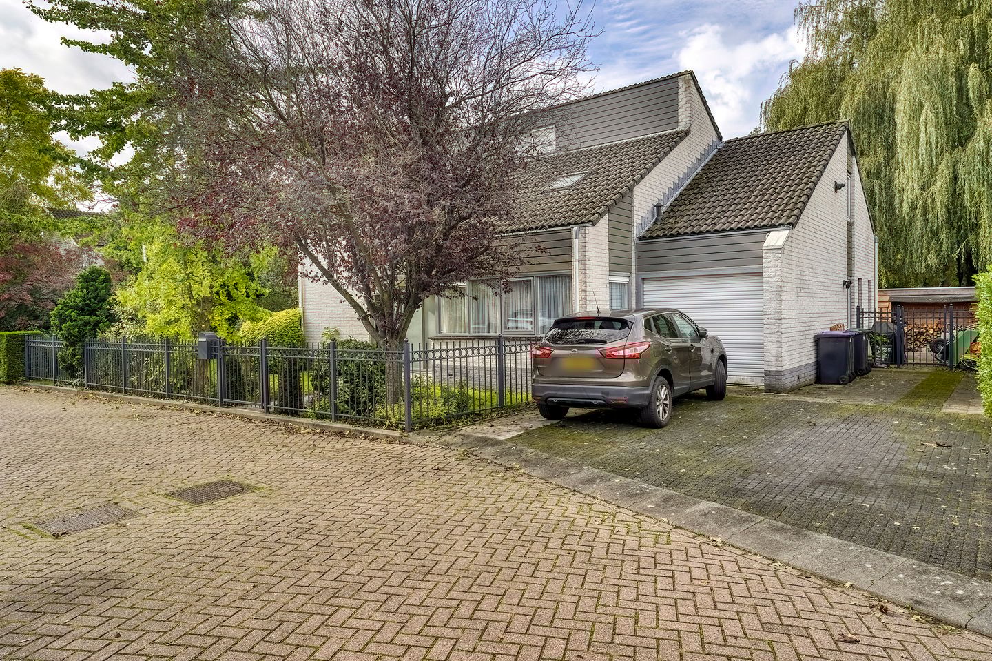 De garage biedt ruimte voor één auto of meerdere fietsen dankzij de extra zijdeur. Op de royale oprit is bovendien plaats voor meerdere auto’s.