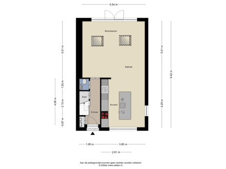 - 63 m² (9,00 meter diep en 7,00 meter breed)