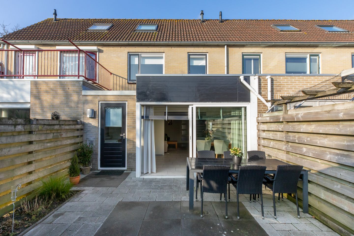 In de achtertuin is het heerlijk tot rust komen. Deze is grotendeels bestraat en voorzien van een houten berging met elektra. Een poort ontsluit de tuin richting de brandgang. Parkeren kan aan de voorzijde aan de straat of in één van de parkeervakken in de omgeving.