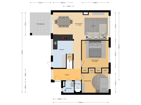 De woonkeuken is een echte eyecatcher: compleet vernieuwd in 2024 en uitgerust met een schiereiland, inductiekookplaat met geïntegreerde afzuiging, spoelbak met Quooker, luxe werkblad, wijnklimaatkast, combi-oven, koel-vriescombinatie en vaatwasser. Vanuit de keuken heb je via schuifdeuren direct toegang tot het ruime, gedeeltelijk overdekte dakterras — een heerlijke plek om beschut buiten te zitten.