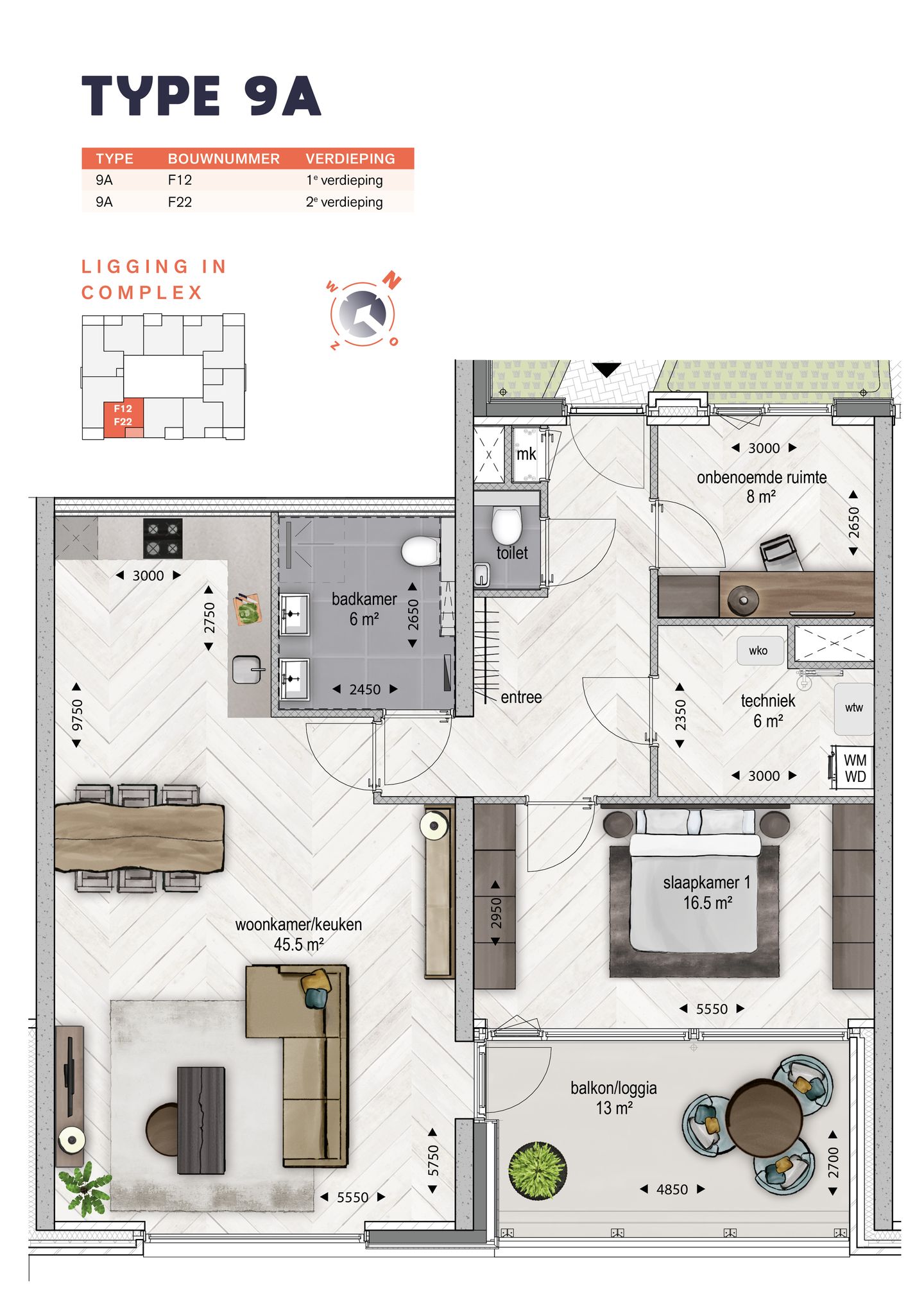 • Balkon/loggia: ca. 13 tot 15,5 m2