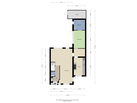 - 45 m² (9,00 meter diep en 5,00 meter breed)