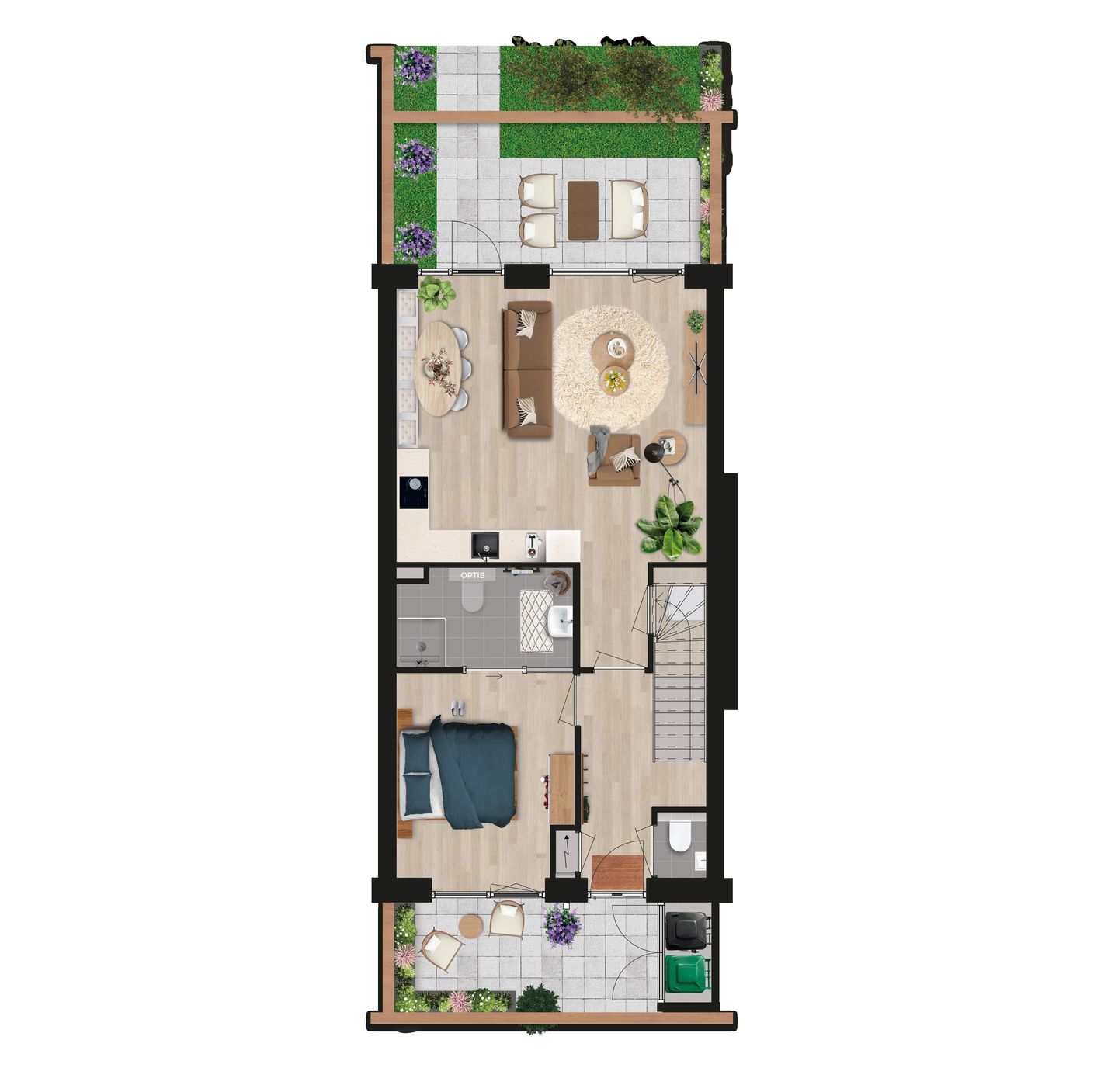 Net als type Magnolia is type Esdoorn een levensloopwoning, maar dan met nét dat beetje extra ruimte. De opzet is gelijk, met een riante woonkamer, open keuken en twee royale buitenruimtes: aan de voor- én achterzijde van uw woning geniet u van een ruim terras.
